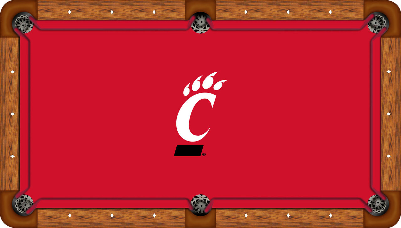 Let your team spirit show with this beautifully constructed high-quality Cincinnati Bearcats billiard table cloth. This officially licensed pool table felt is a perfect addition to any Bearcats themed gameroom or man cave. Our recreational billiard cloths are manufactured using state-of-the-art, dye-sublimation technology which produces clear, eye-catching graphics that are permanently imprinted on a blended polyester gaming cloth. This cloth is ideal for those consumers wanting to spice up their gameroom at an affordable price - high-quality at a great price.