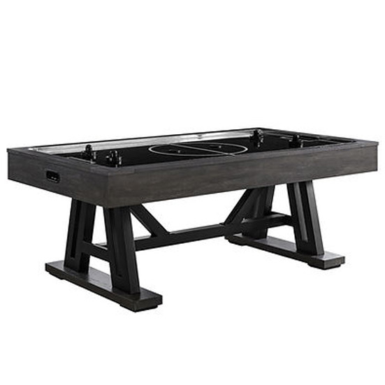 Introduce fun and farmhouse flair to your game room with the Shelton Air Hockey Table. The table features a rustic-modern design, with a sturdy metal base.