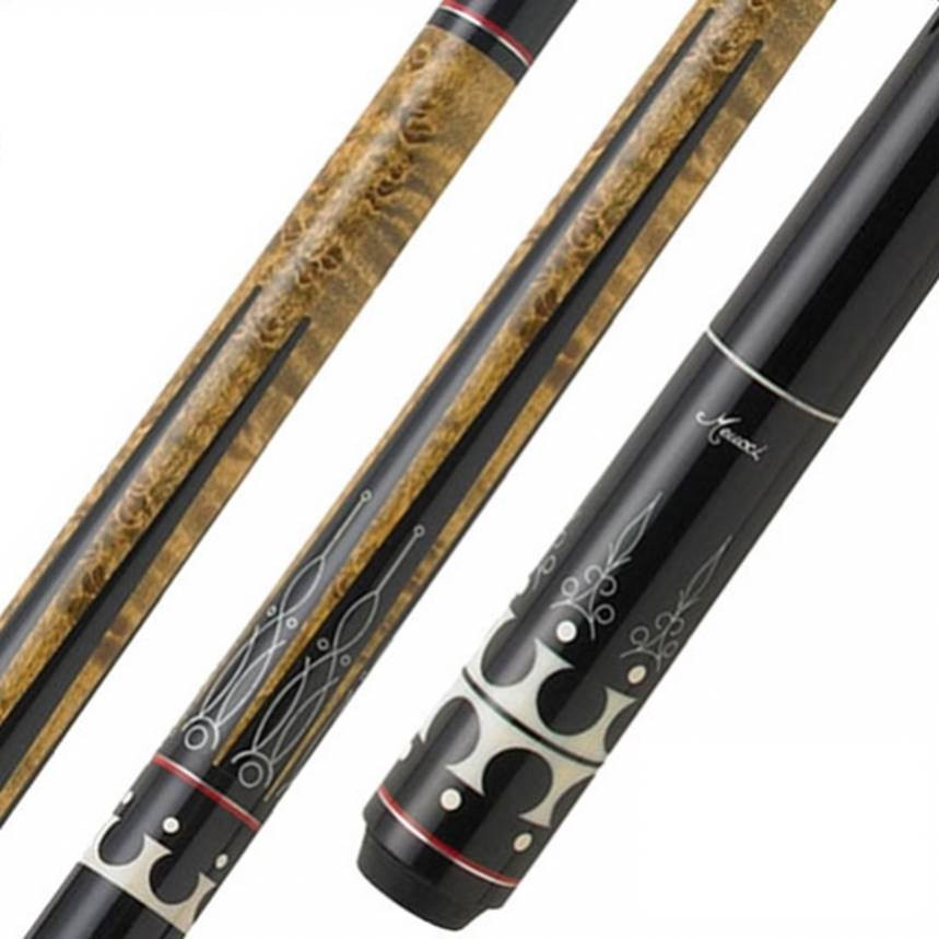 Fit for a King! Incredible performance and style! Elevate your game with this Meucci classic 21st Century #1 pool cue stick. This cue is uniquely designed with a king's crown effect on the butt, the joint, and just above the wrap. The crown design is made from a hardened imitation ivory tone material. The forearm consists of six black points, with a unique scrimshaw on each point, all set in a birdseye-forearm. In the butt sleeve there are also six unique scrimshaw designs to further set off the king's crown. Tasteful red, aluminum, and white rings complete the design of this beautiful cue. The Meucci 21st Century #1 comes with one of Meucci's unsurpassed 35-layer low-deflection Black Dot Bullseye laminated shafts.