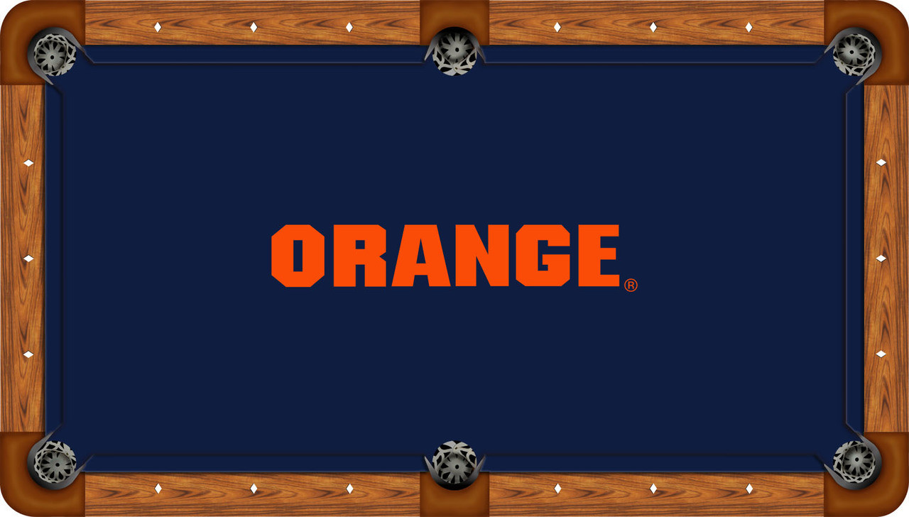 Let your team spirit show with this beautifully constructed high-quality Syracuse Orange billiard table cloth. This officially licensed pool table felt is a perfect addition to any Orange themed gameroom or man cave. Our recreational billiard cloths are manufactured using state-of-the-art, dye-sublimation technology which produces clear, eye-catching graphics that are permanently imprinted on a blended polyester gaming cloth. This cloth is ideal for those consumers wanting to spice up their gameroom at an affordable price - high-quality at a great price.